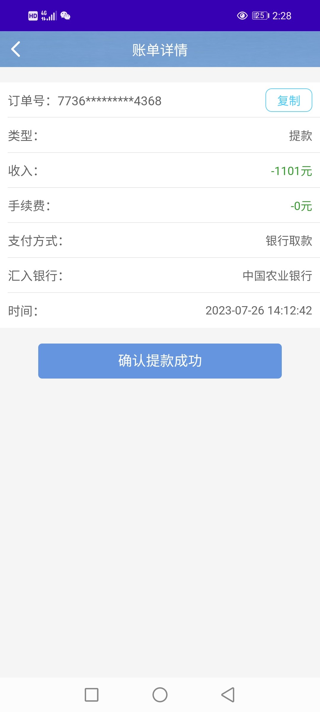 提了1100,显示提款成功卡里没钱,让等五个小时,