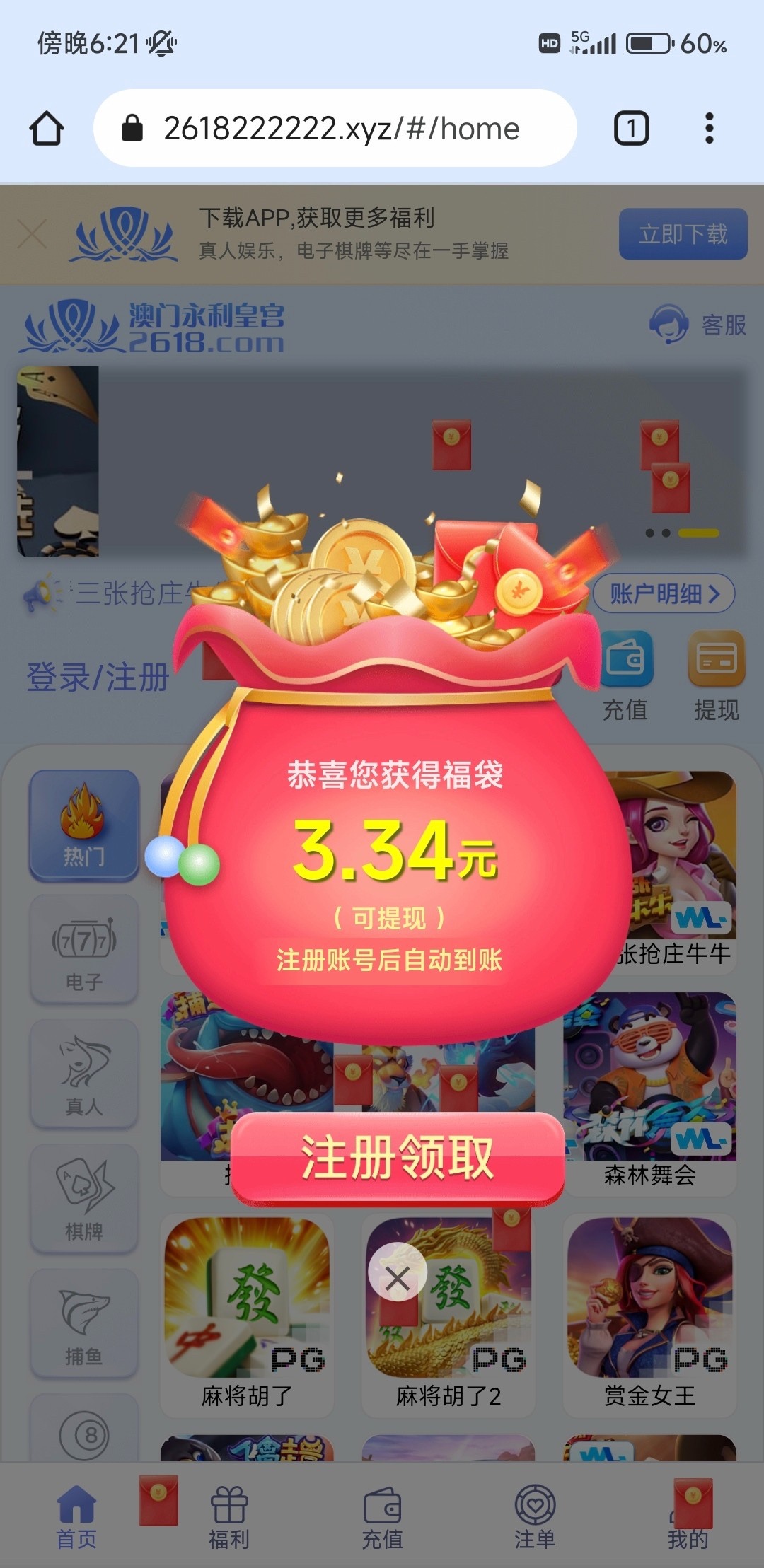 新用户进下方链接等一会儿出现红包领取,注册直接秒到随机金额打到100提现。
