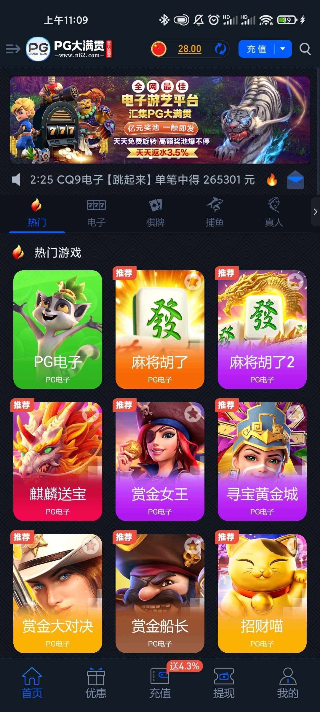 Pg 大满贯送28
