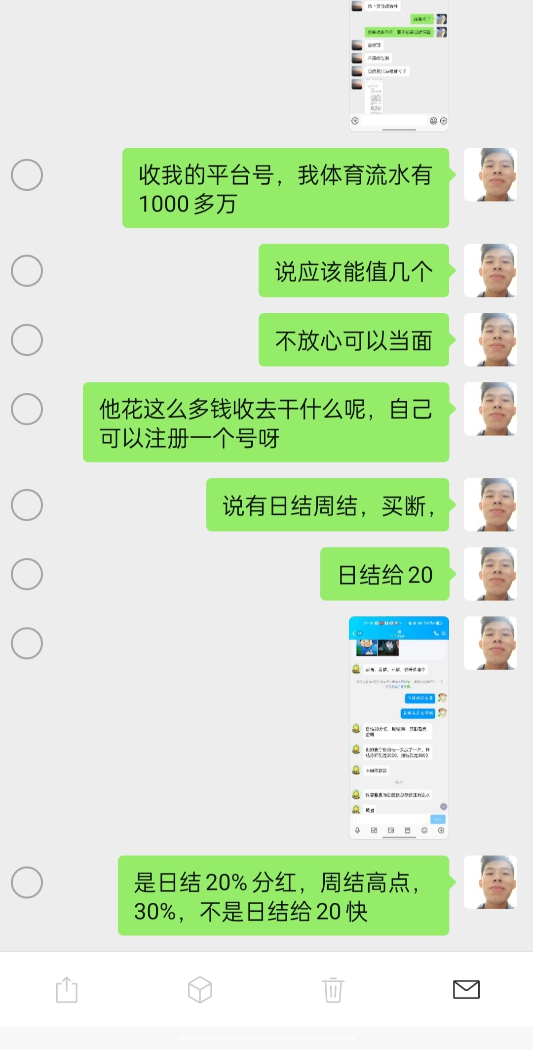还说流水越高越值钱,要我截图总存款和总流水,他是不是要用我的号去撸狗庄的钱啊,撸极速,用p图骗上分,