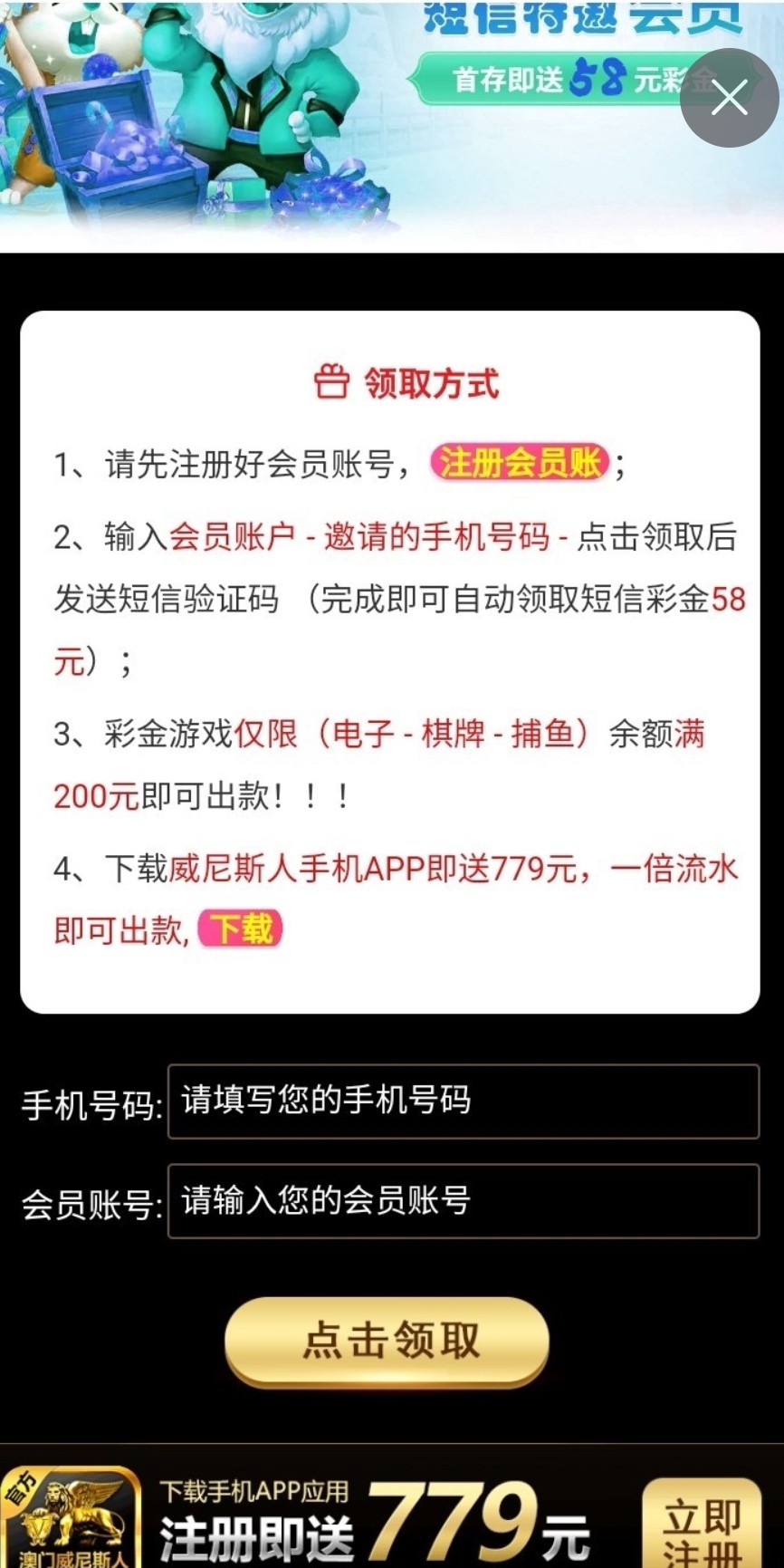 新用户短信特邀碰瓷,秒58自己手机号去试试,没有无视即可