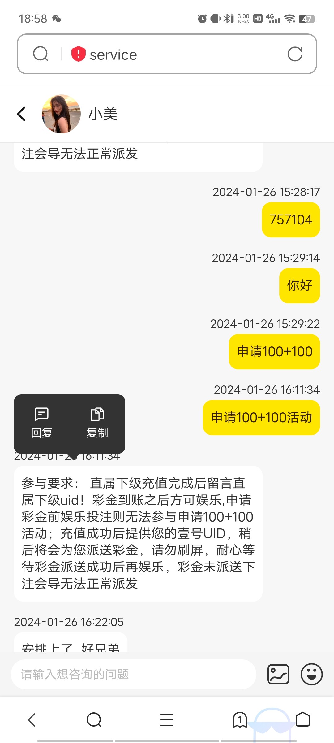 路人,萌萌我知道错了,存了200输完了   然后送100没人回复就没管,刚才突然发现到了,然后就100博到1200  流水也没打够但是竟然成功了,给力  200上1200可以交房租了