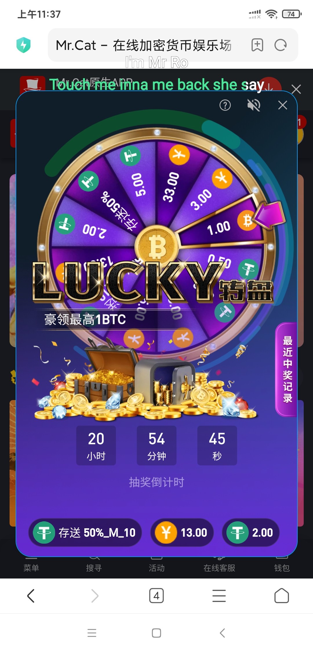 猫先生LT每日转盘3R-5U,免费猜比分平分1000U