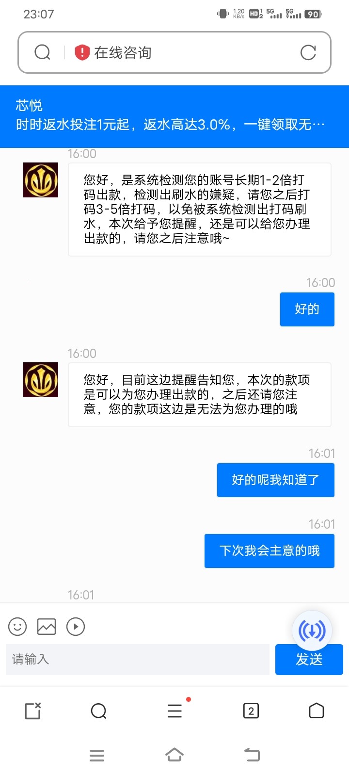 说我低流水提款,是不是以后没得玩了