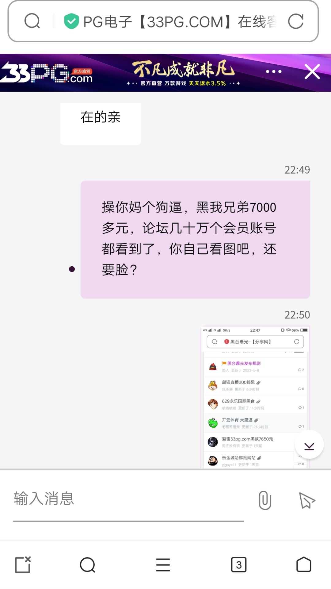 本站声明 1、本帖标题:避雷33pg.com黑款7650元