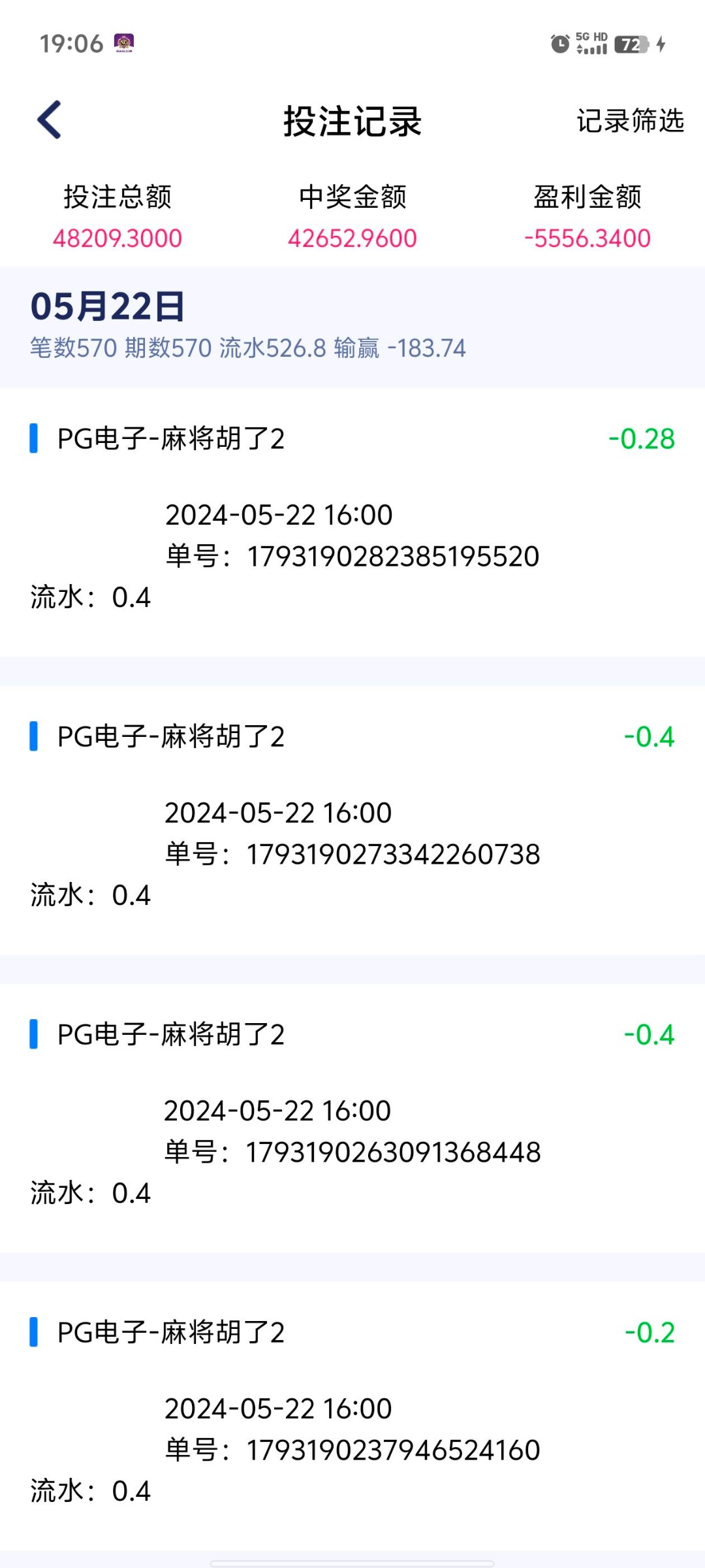 你这个不算啥,六月初我赢了20多个全送回去了,我才18,感觉整个人都完了
