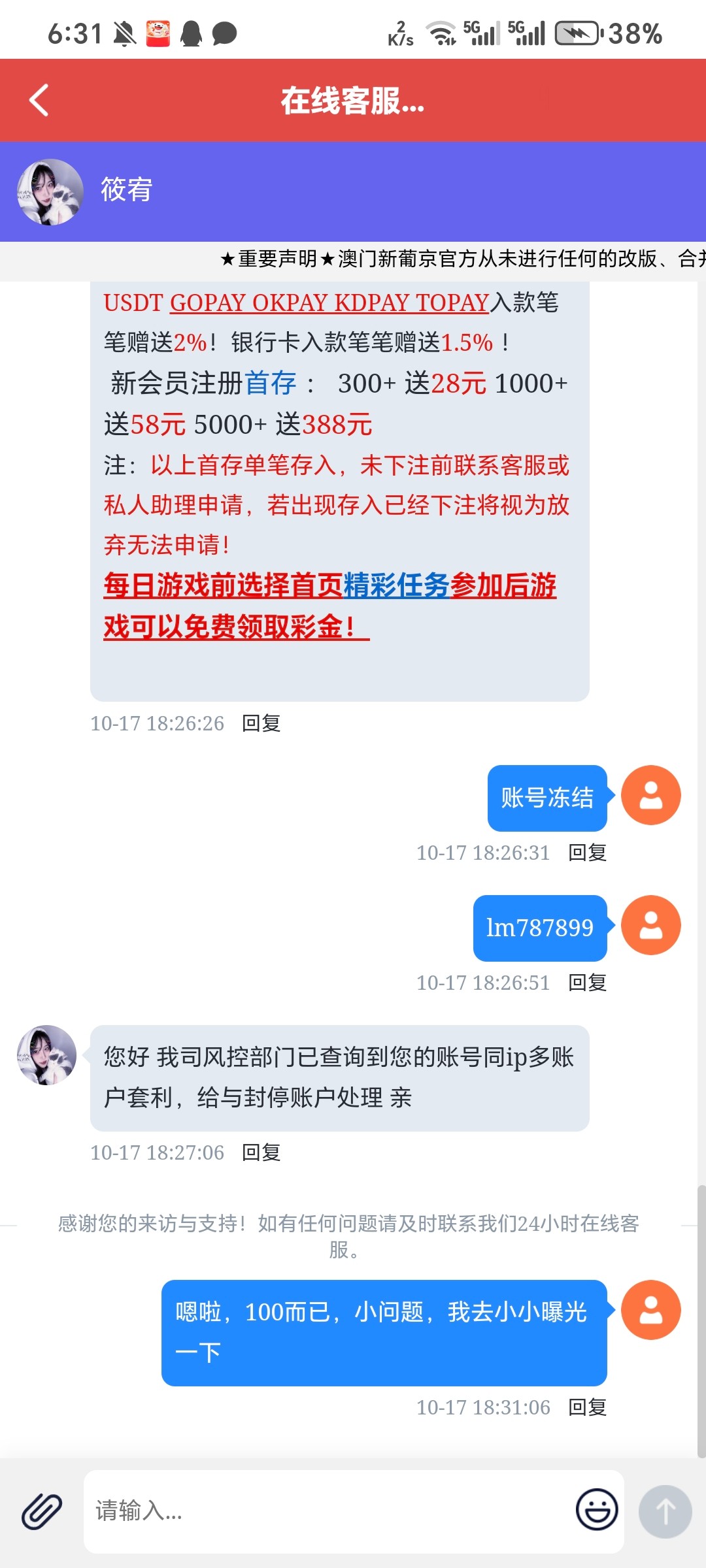 玩的电子上800冻结账号