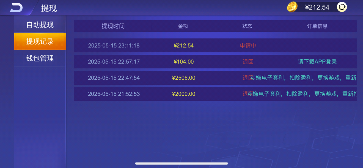我前天大发989!冲2800!提2000都说我注单异常!扣除了!我全程只玩的麻将和女王