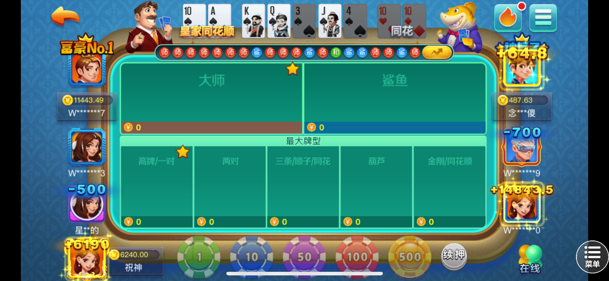 本来枪红包枪了一块8中了17号给了130慢慢打上几千已经提了 留了50买了同花顺20块两百多倍给了