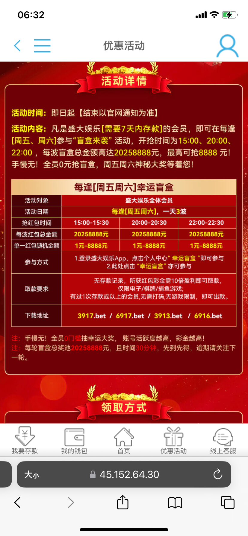 有号的去抢一下,没有也正常,我vip4有时候也没有,四五个月没充值了,抢盲盒出过好几次, 网址3917.com,6917.com
