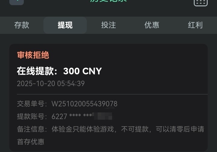 垃圾台子,说体验金只能体验游戏,不能提现。不能提现送彩金啥意思,不如去玩模拟