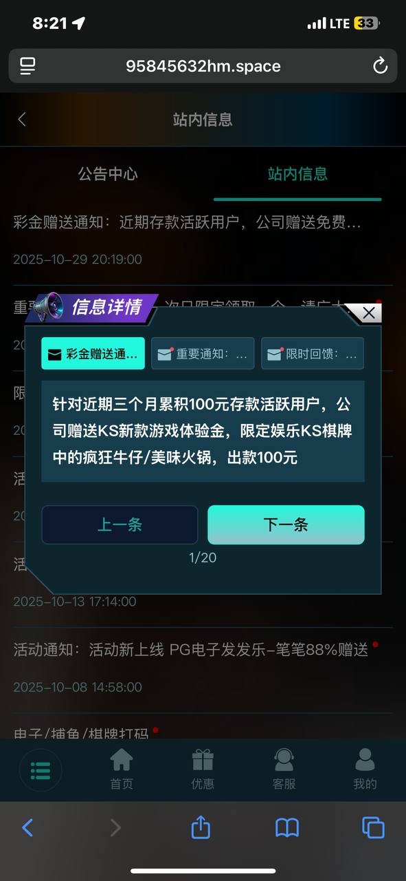 近三个月累计存款达到100的,登陆上去就有新游戏体验金,只能玩新出的那两个游戏。有号的可以去看看。