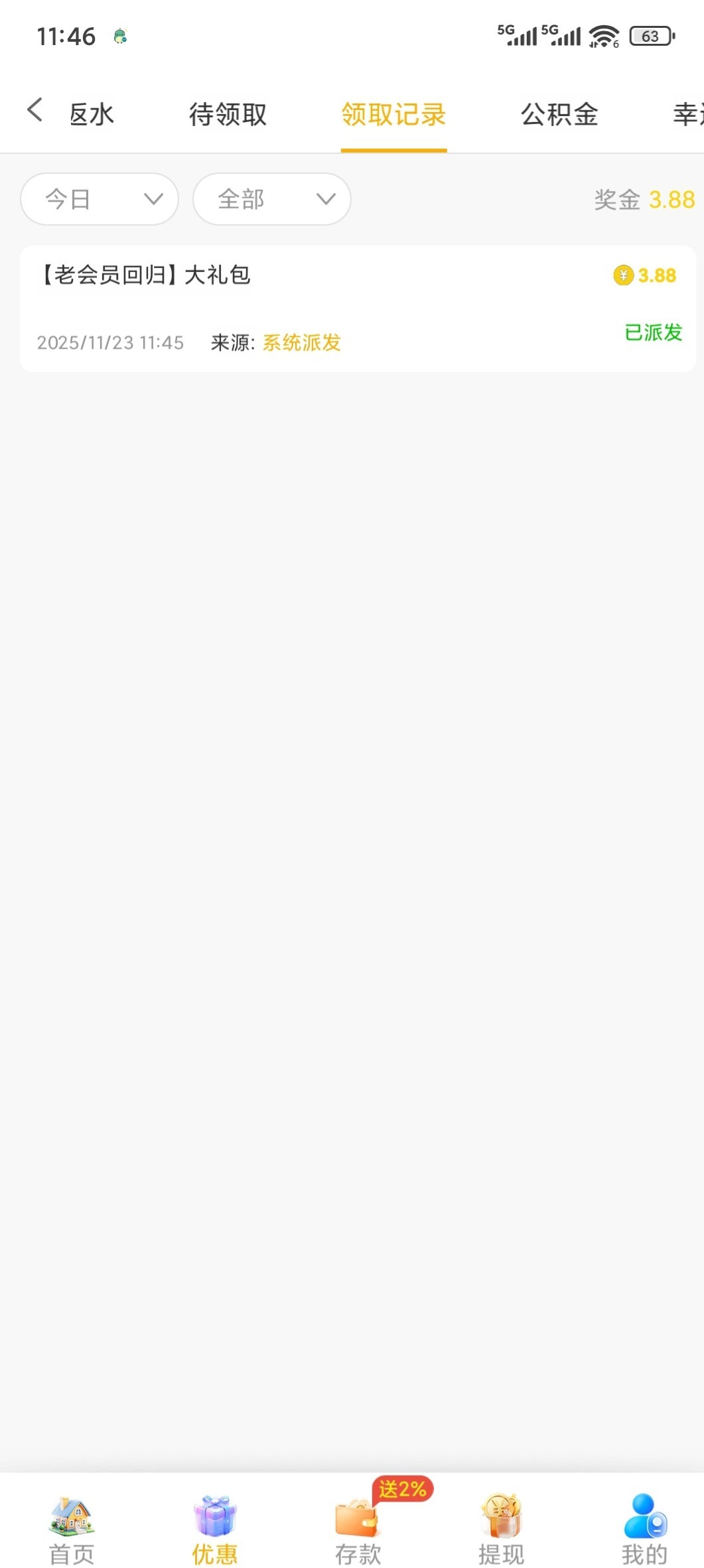 收到短信上去看有个回归赌神彩金