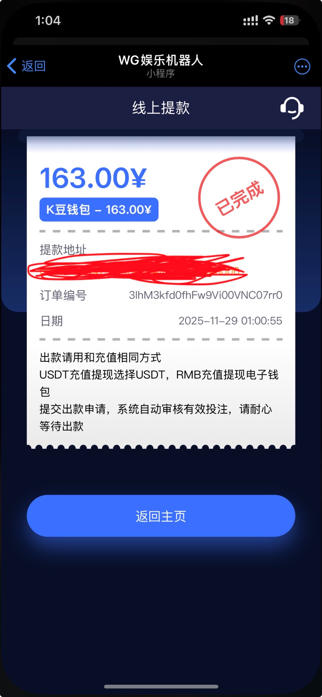 我提款到账了