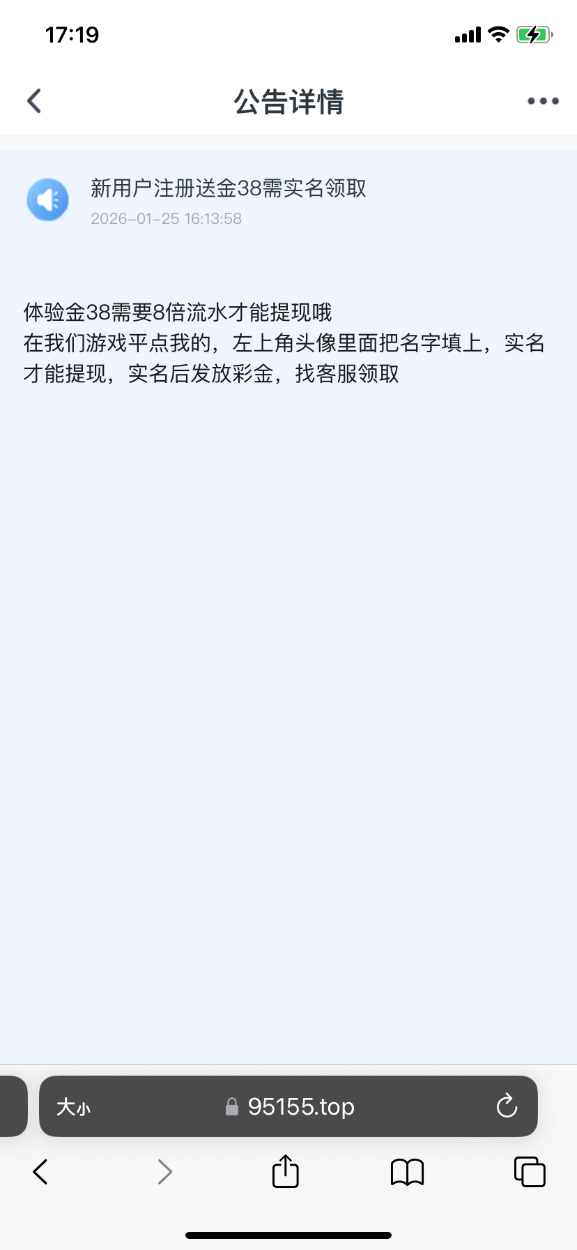 飞机里面看见的 注册按照要求实名了几分钟到账不到账联系客服送估计客服挤爆了 出款自测 不要充值 我看见别人出款了 我没有打出来