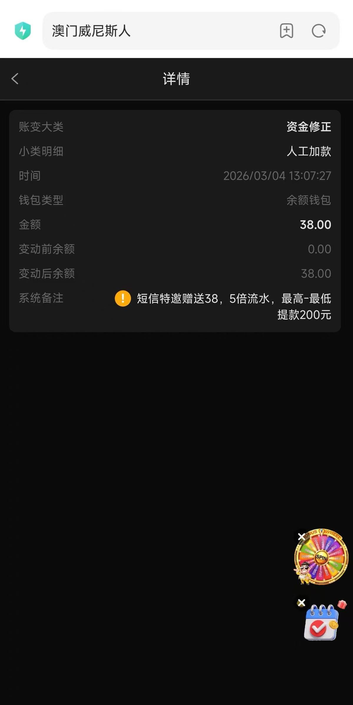 送38彩金5倍流水,只能提200整