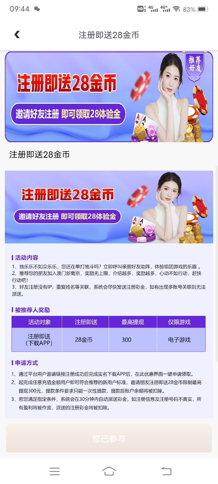 通过邀请链接注册下载绑卡申请28 先注册然后下载 然后再绑定银行卡 点到那个活动页面点申请就ok了 应该算是半黑吧 出款自己测