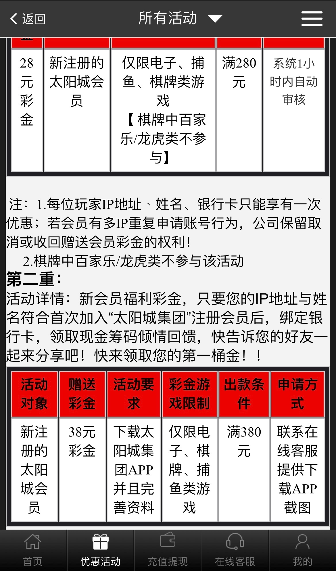 新用户注册完善个人信息绑定银行卡即可联系在线客服申请28新用户注册彩金 下载平台APP再送38彩金 限制电子 棋牌 捕鱼