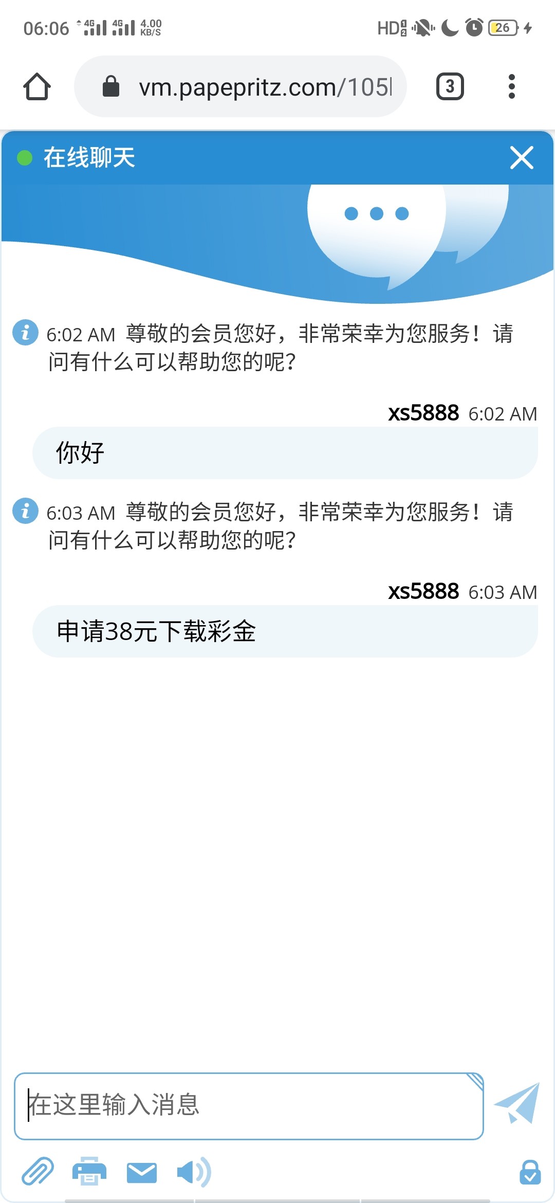 傻逼客服,申请彩金马上挂了
